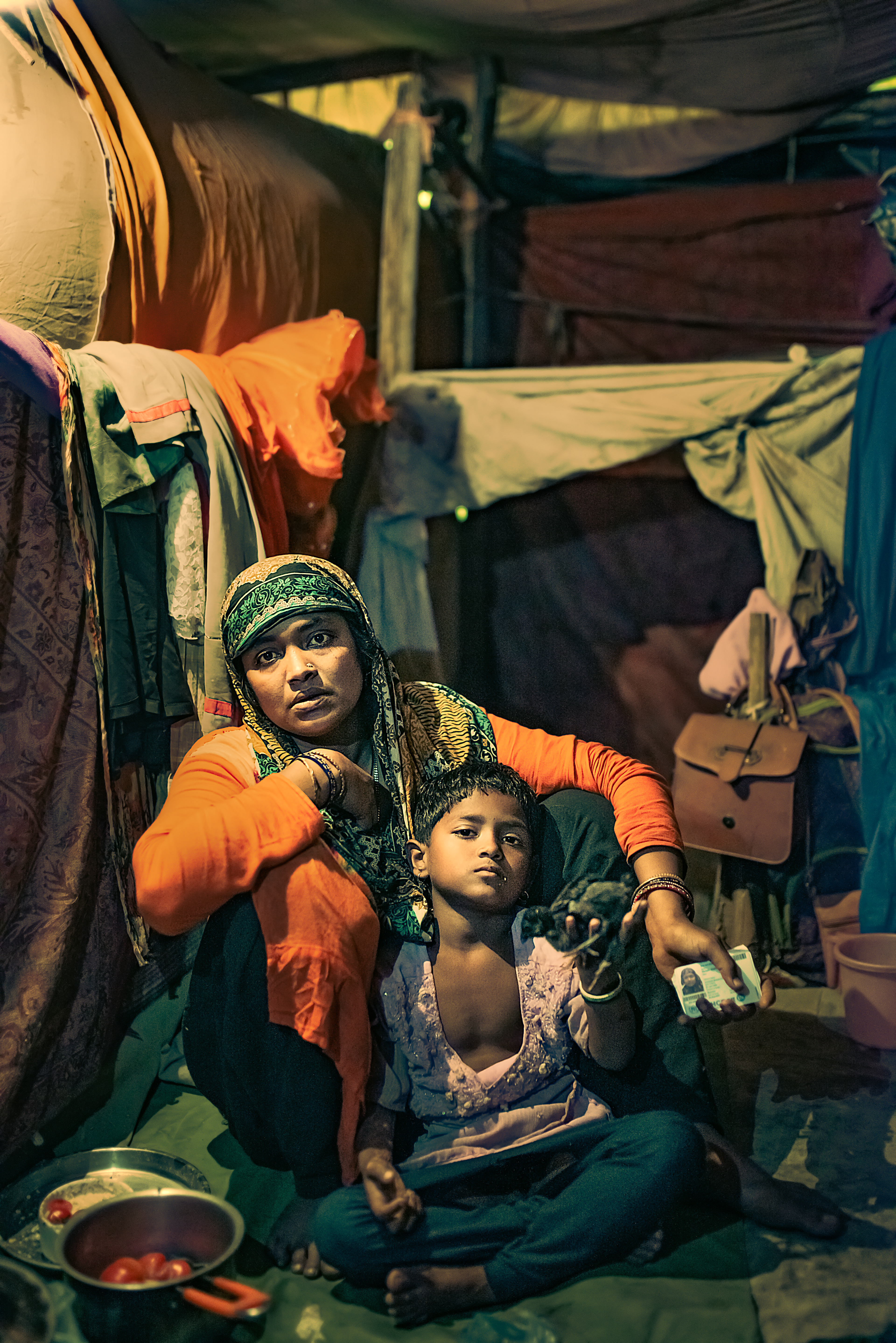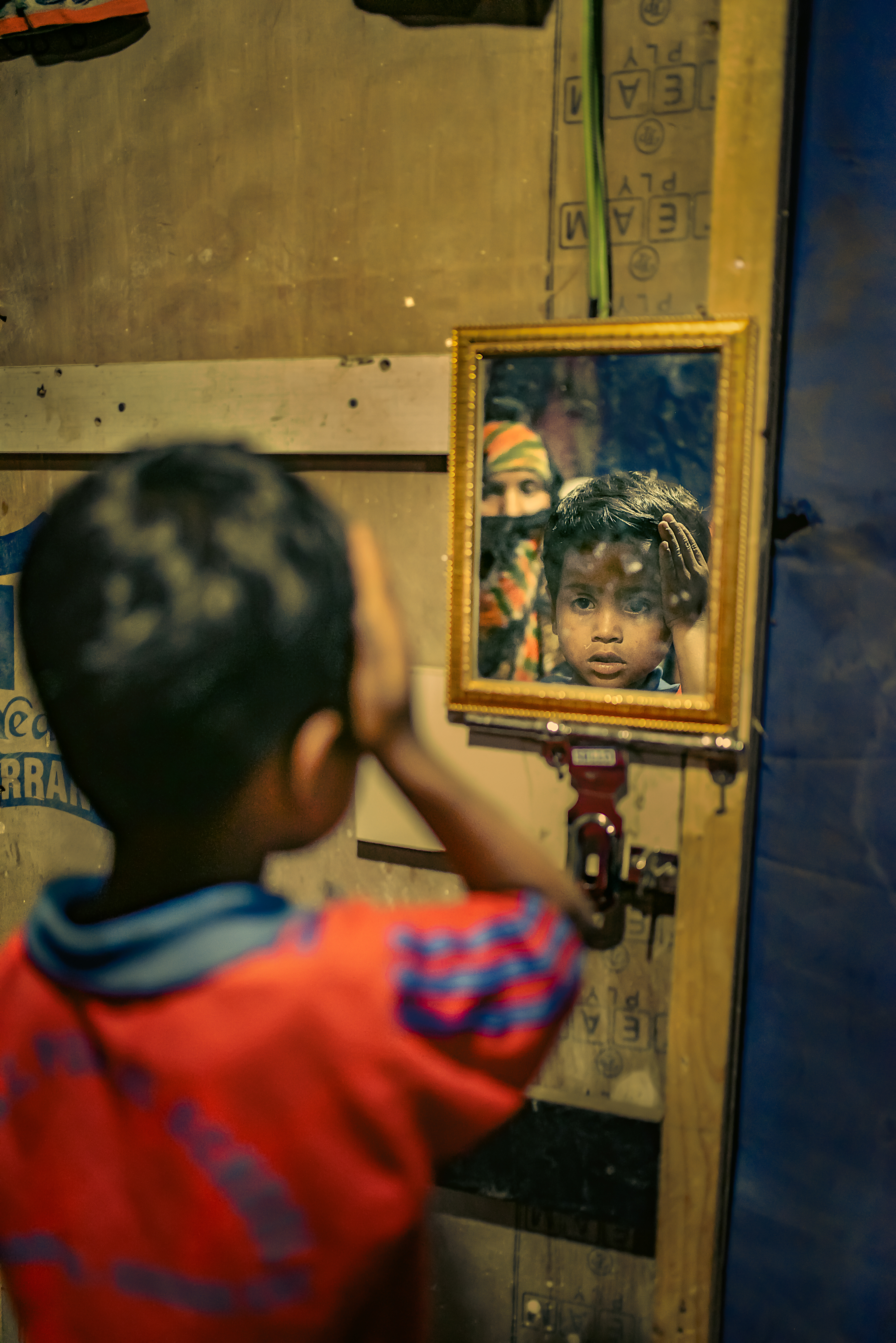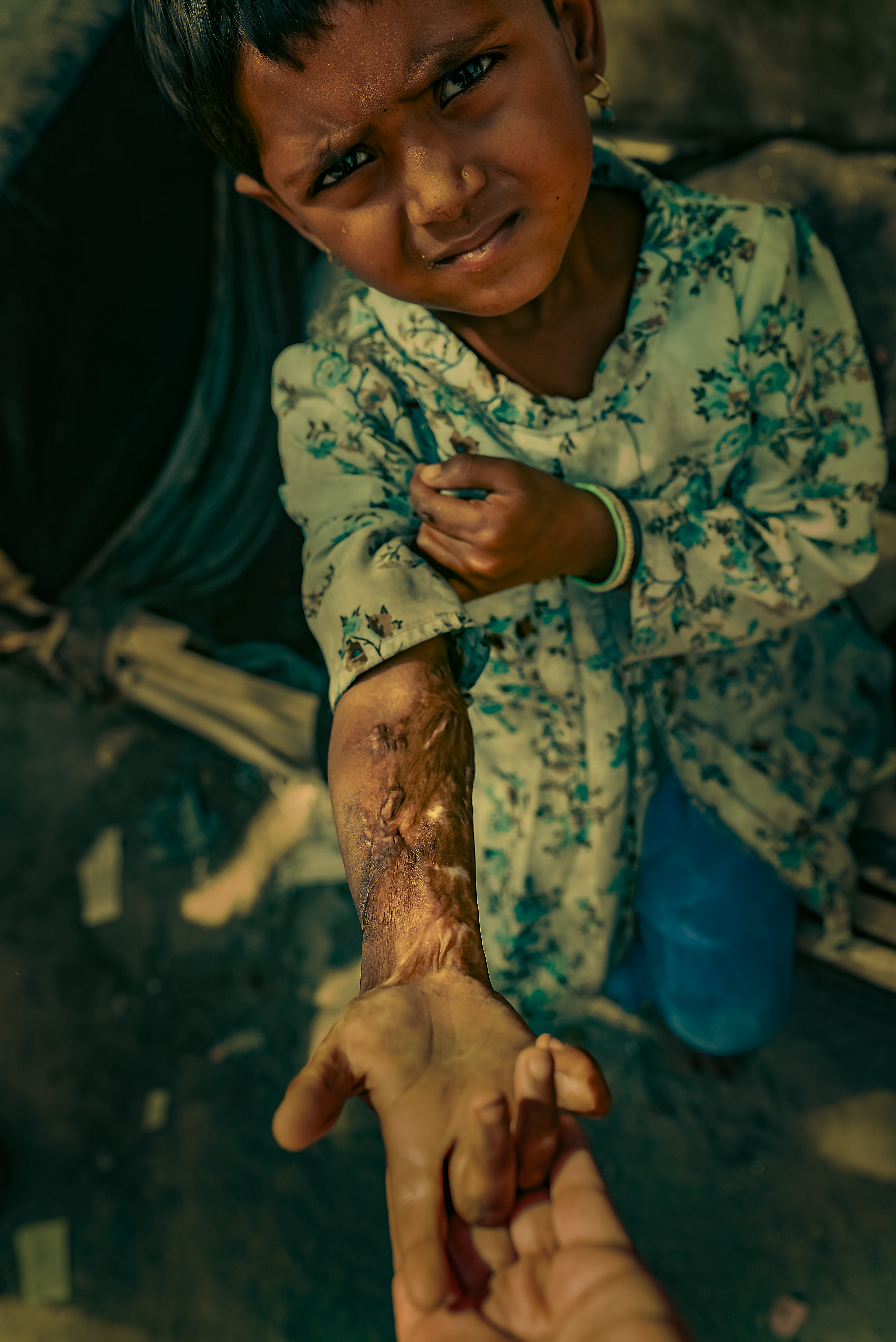 “Ronak”. Her name literally translates to radiance or celebration. She is 3. No. Maybe she is 5. Her mother couldn’t decide what her exact age is. When life is such a strife, you just get on with it. You don’t celebrate occasions. But somehow amidst all of this endless struggle, Ronak knew how to celebrate herself. She had a little box of embellishments. When I went into that choking little, blindingly dark and cluttered space in which she lives with her three other siblings and parents, she quickly took out her “makeup” and started to paint her beautiful face. No care in the world. Unfazed. Just sheer innocence. A magical childhood in the heart of a raging turmoil.