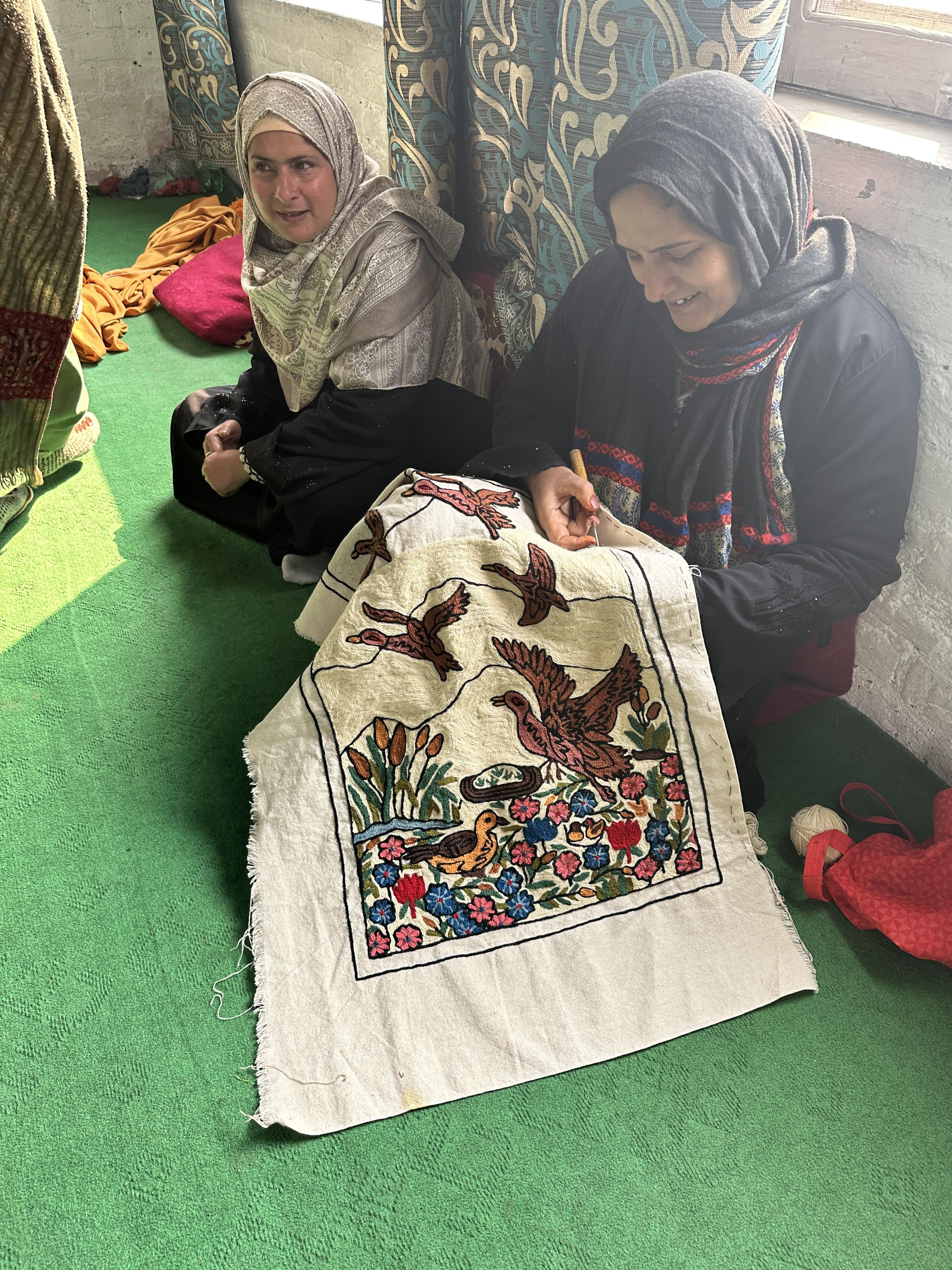 But I could never return. Kamini and I left Srinagar on 2nd May 2025. On 7th May war broke between both nations. Kashmir was closed. I called up Assma from Shehjar (the centre run by Help Foundation where the artisans work) to ask how the situation was and if she could hear the drone attacks? She said "Yes, the sounds of drones are loud and clear but don't worry. We are all working. We are fine."